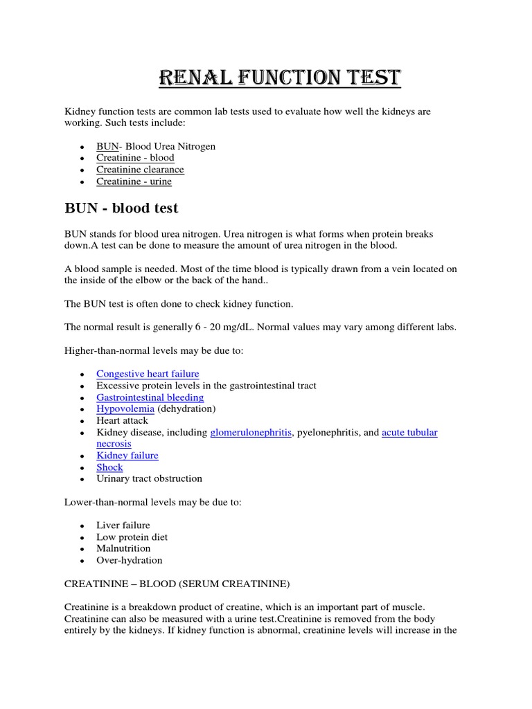 Results of blood tests for kidney. Models of foot function explore different models of foot function with. A physician will order this test if he or she believes your kidneys are not working properly, or to monitor a patient who has diabetes or high blood pressure. This is a part of series of notes on clinical pathology, useful for undergraduate and postgraduage pathology. The test has particular value in the general assessment of renal function in cases when plasma analyses are invalid, such as after.